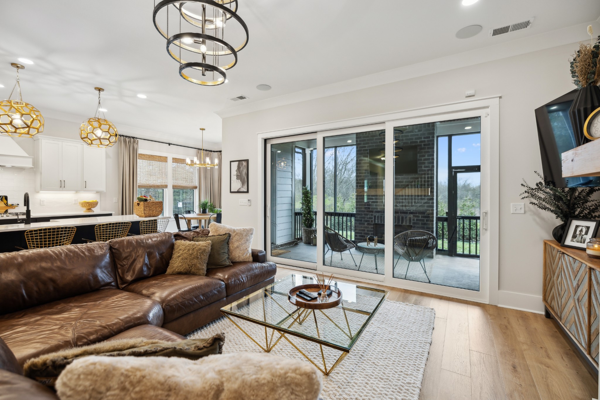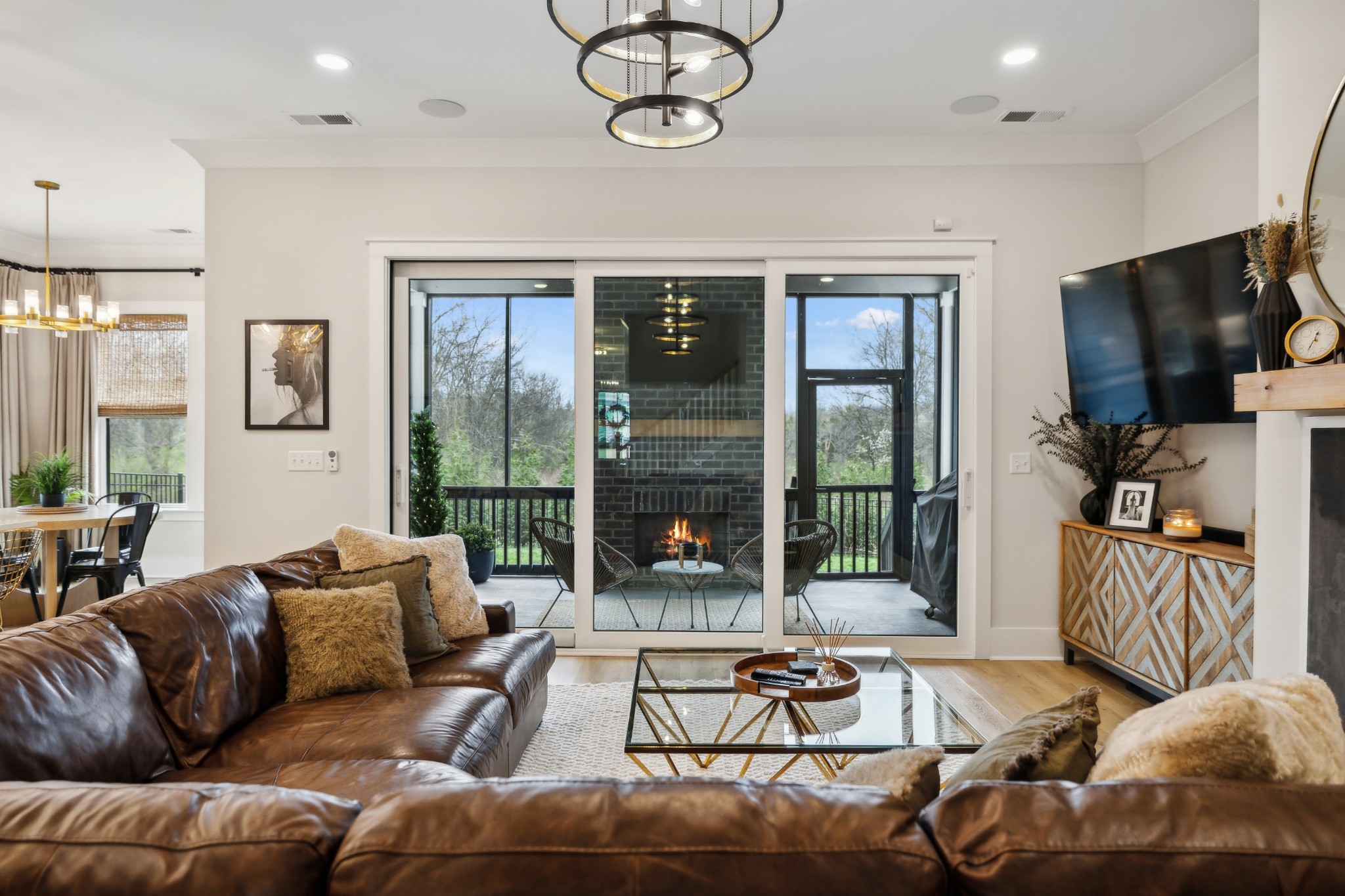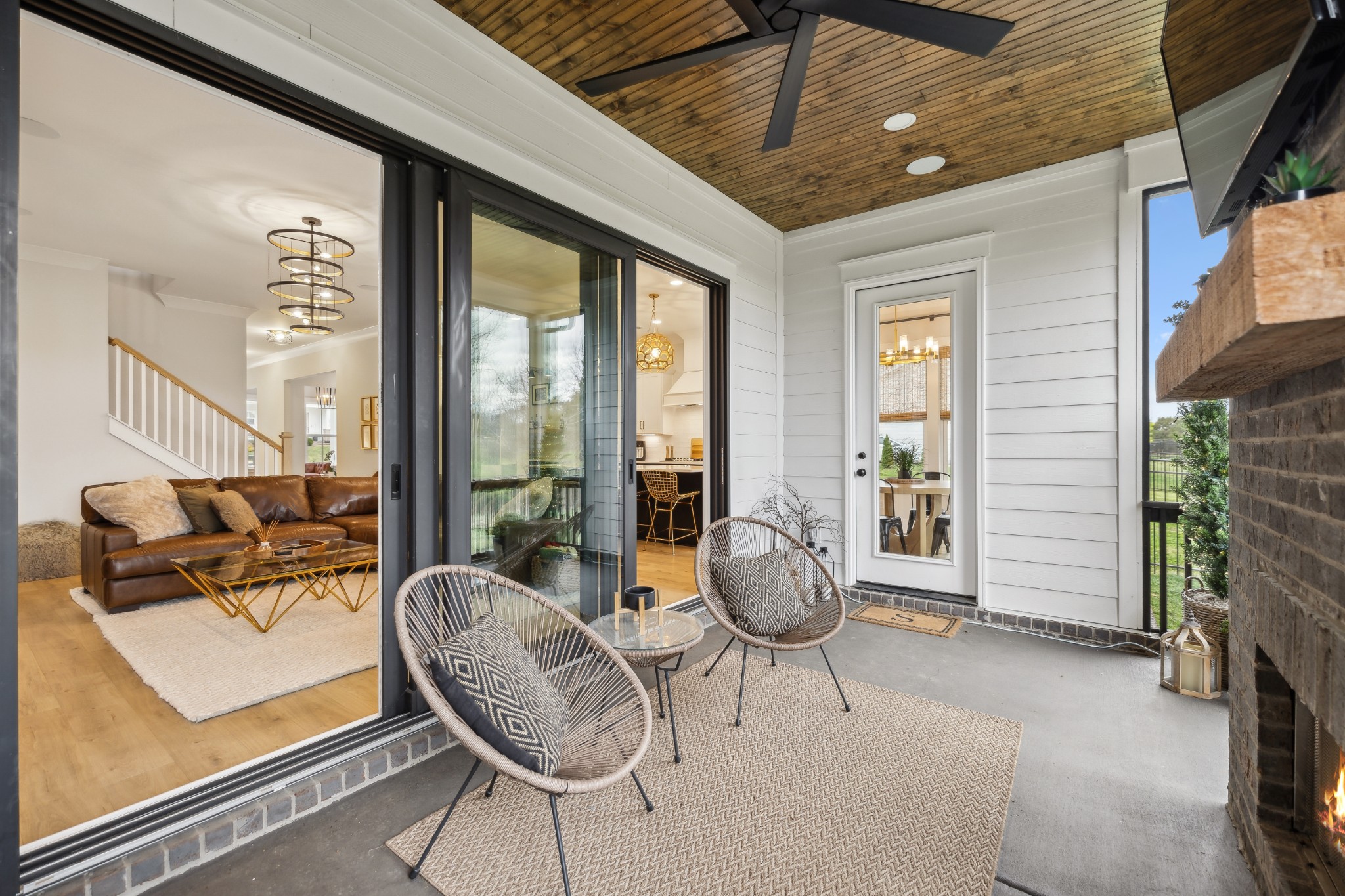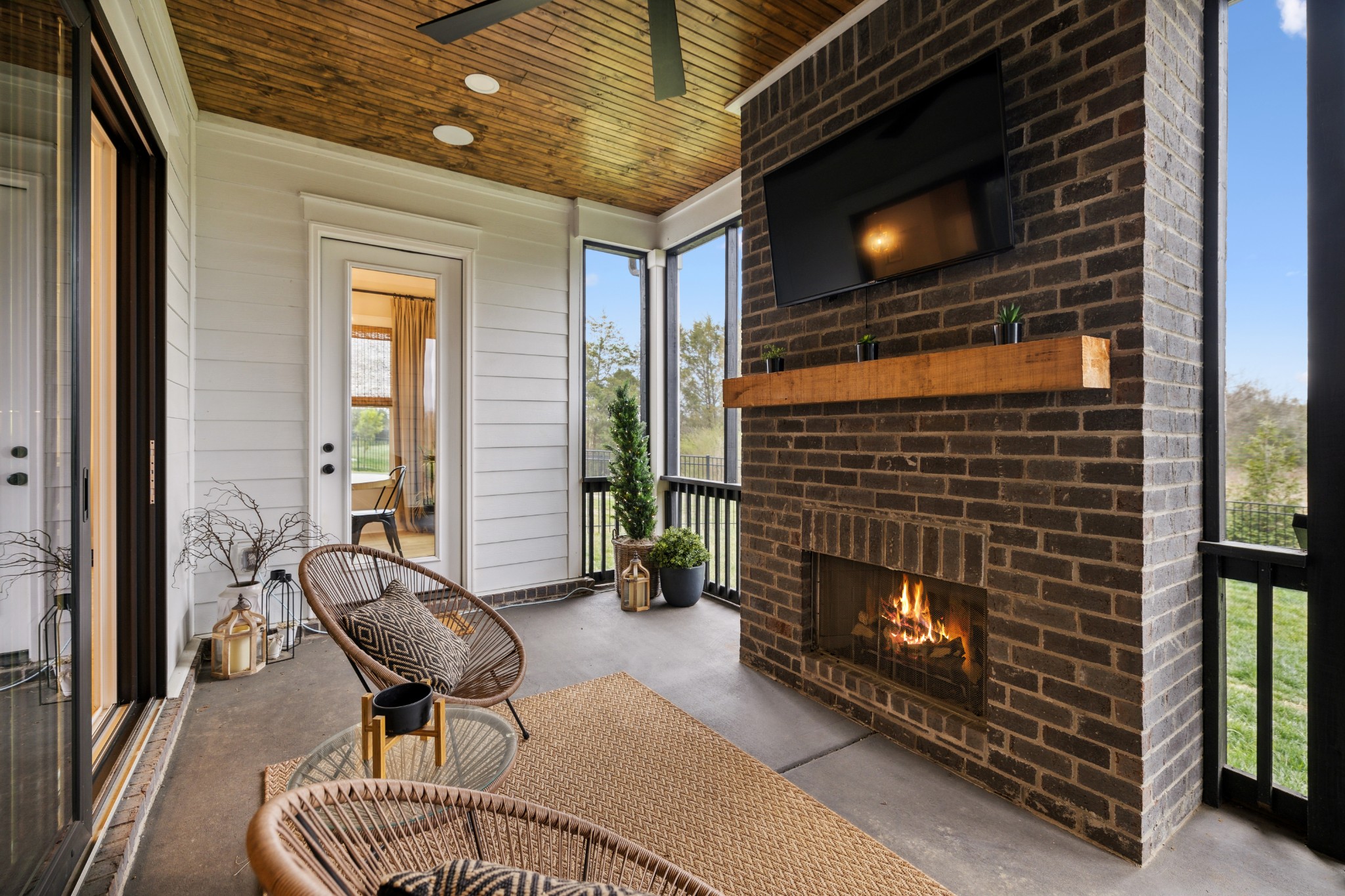 This stunning six-bedroom home offers incredible flexibility and a bright, airy atmosphere. Nestled against a serene wooded backdrop, the property provides a sense of privacy and tranquility. A beautiful center-meeting sliding door seamlessly connects the main living space to the screened porch, where a charming brick fireplace creates the perfect spot to relax and enjoy the peaceful surroundings. Inside, the spacious layout includes a formal living room that can easily be transformed into a home office, providing versatility to suit your needs. A stylish beverage bar effortlessly links the kitchen and dining area, making entertaining a breeze. The fenced backyard offers plenty of space for outdoor enjoyment, whether hosting guests or simply unwinding in your own private retreat. This home is a perfect blend of elegance, comfort, and functionality.
