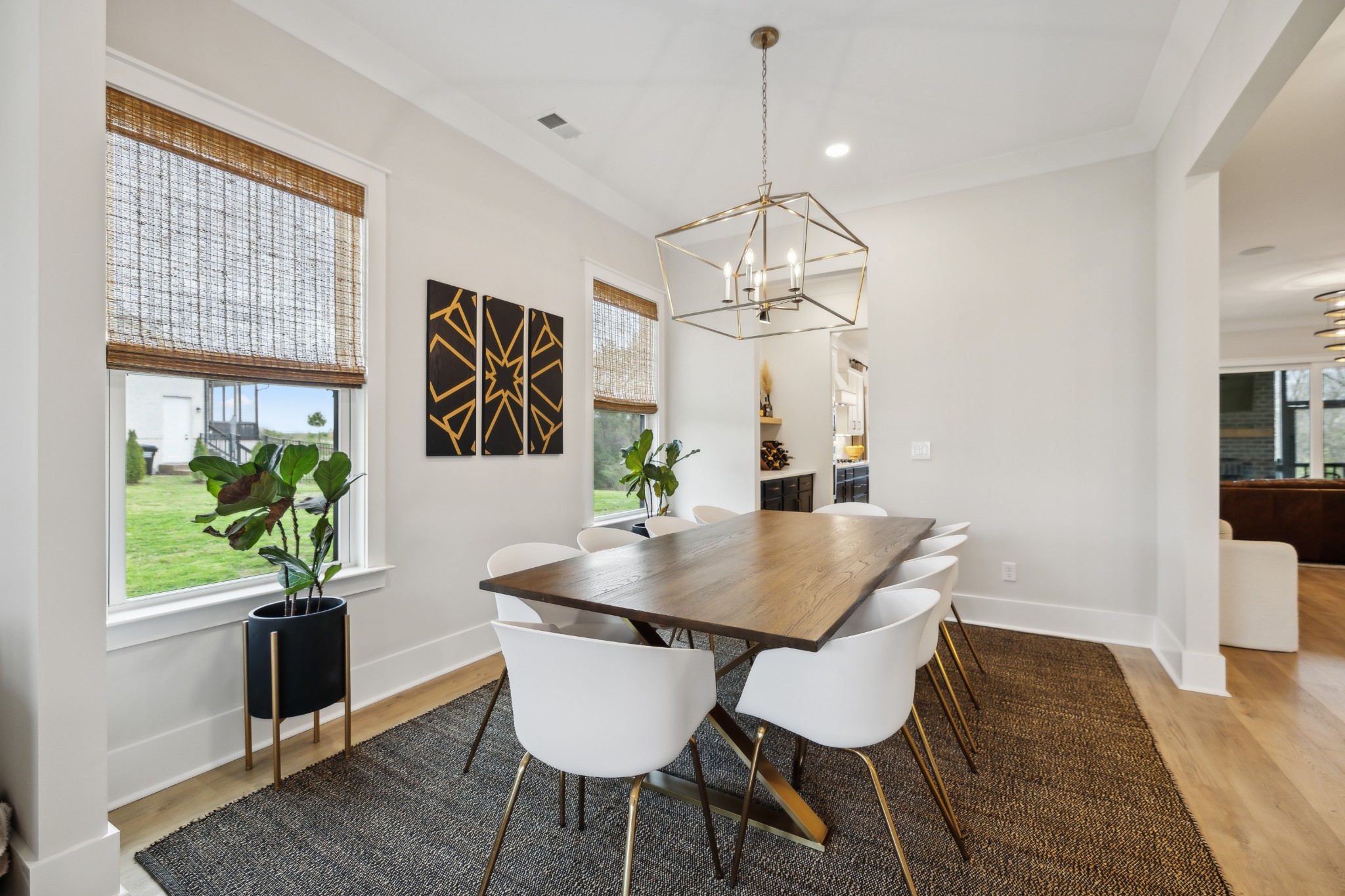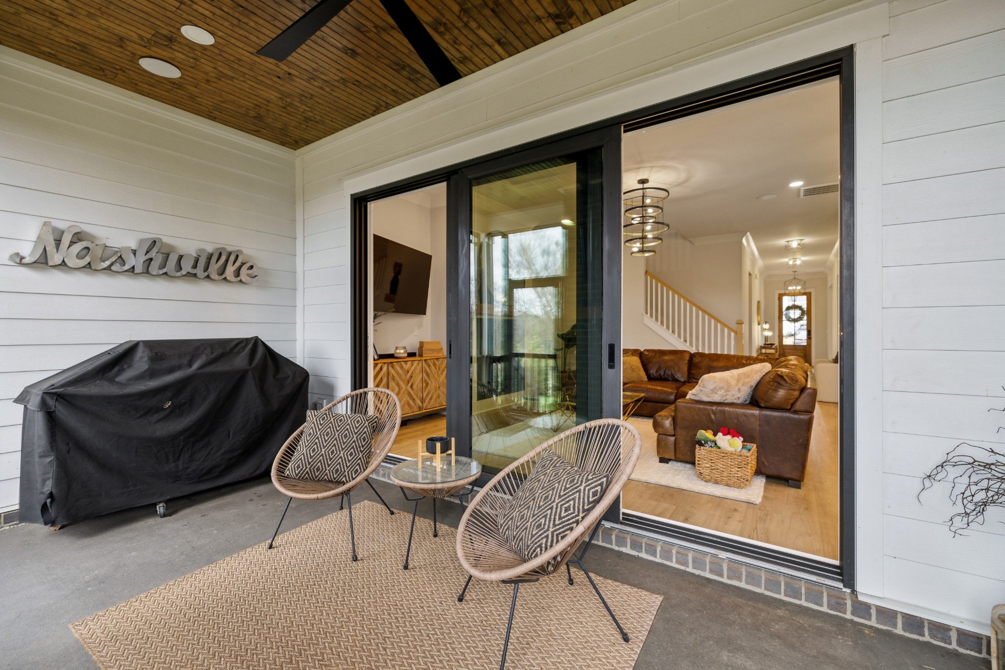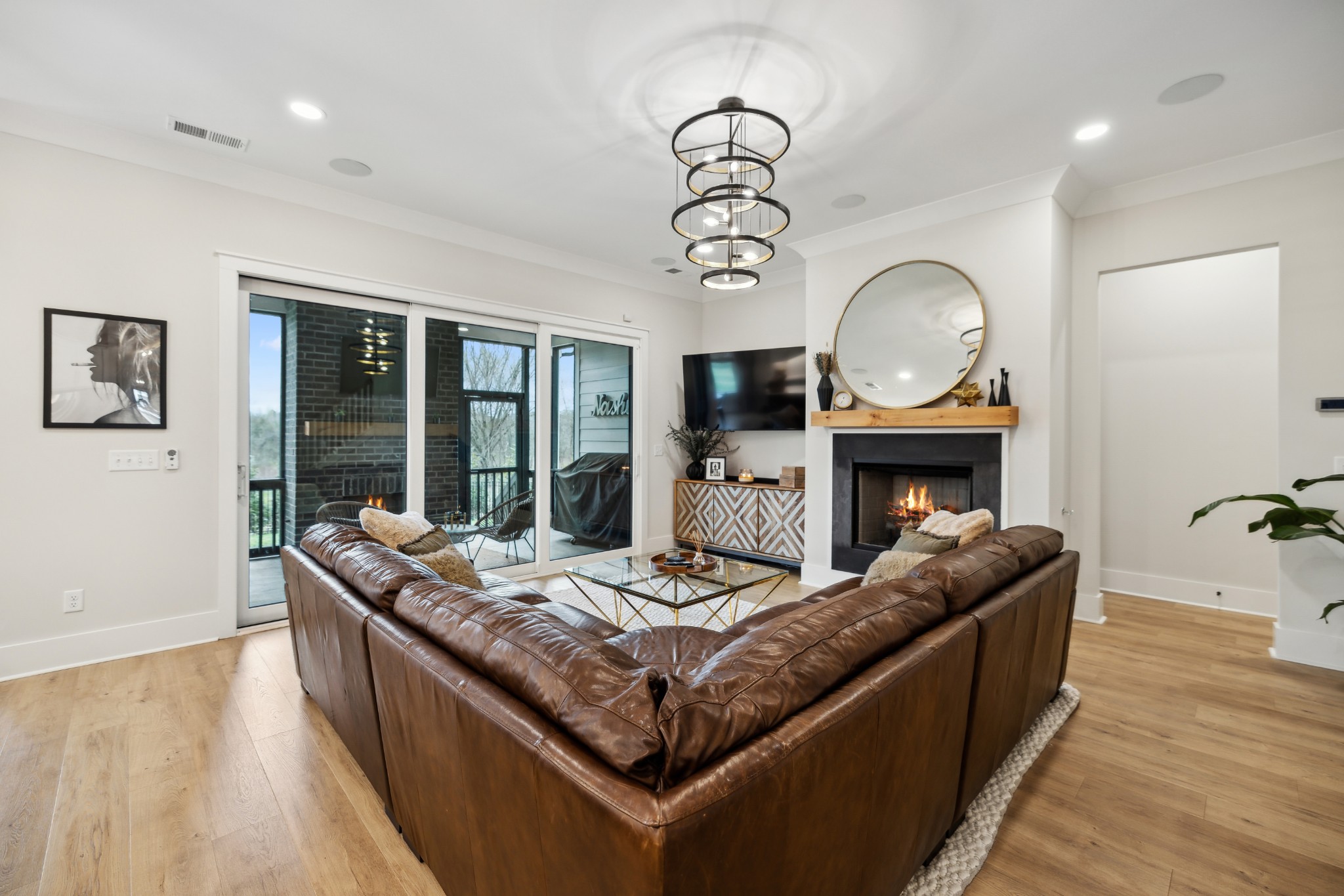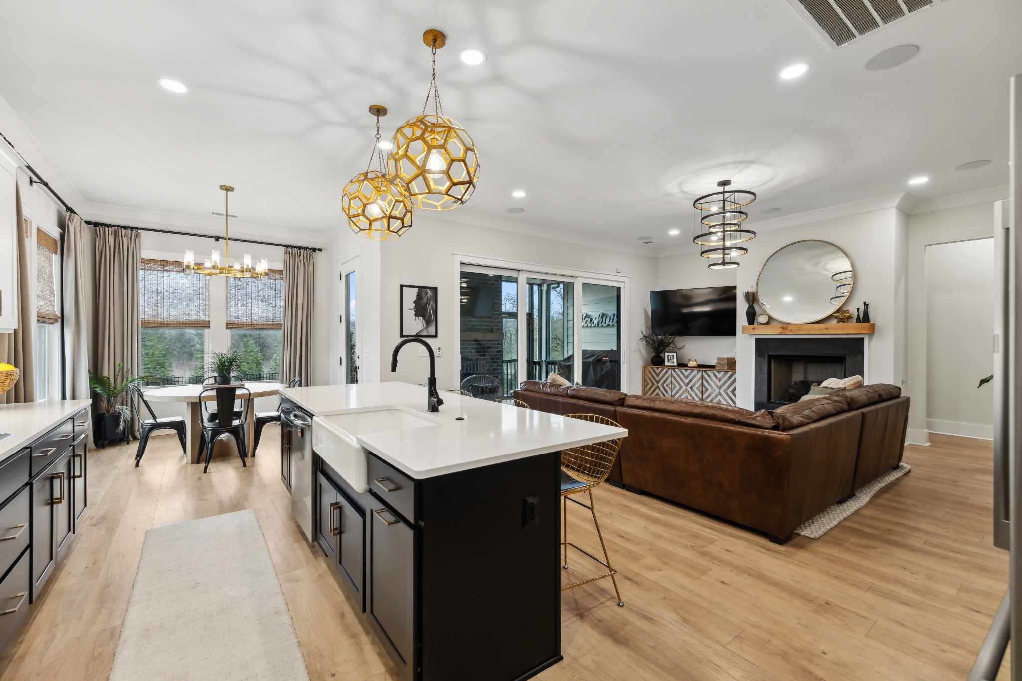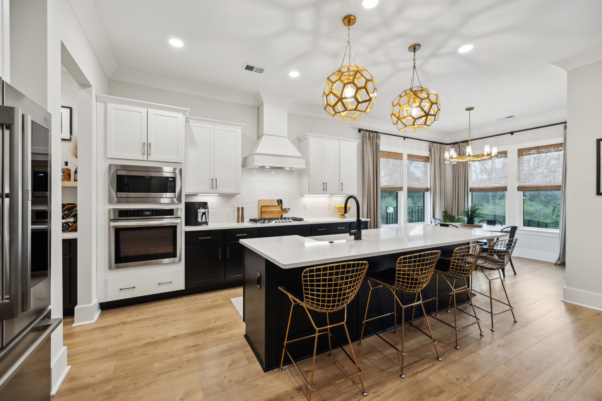 This stunning six-bedroom home offers incredible flexibility and a bright, airy atmosphere. Nestled against a serene wooded backdrop, the property provides a sense of privacy and tranquility. A beautiful center-meeting sliding door seamlessly connects the main living space to the screened porch, where a charming brick fireplace creates the perfect spot to relax and enjoy the peaceful surroundings. Inside, the spacious layout includes a formal living room that can easily be transformed into a home office, providing versatility to suit your needs. A stylish beverage bar effortlessly links the kitchen and dining area, making entertaining a breeze. The fenced backyard offers plenty of space for outdoor enjoyment, whether hosting guests or simply unwinding in your own private retreat. This home is a perfect blend of elegance, comfort, and functionality.