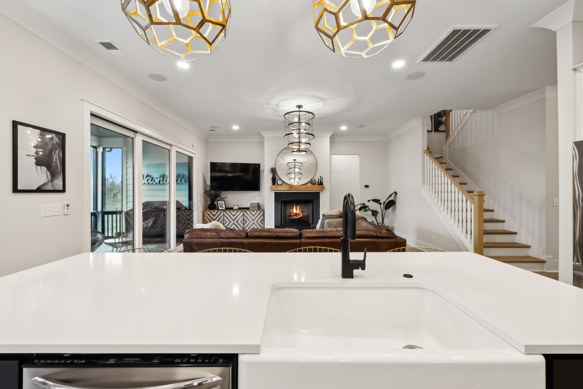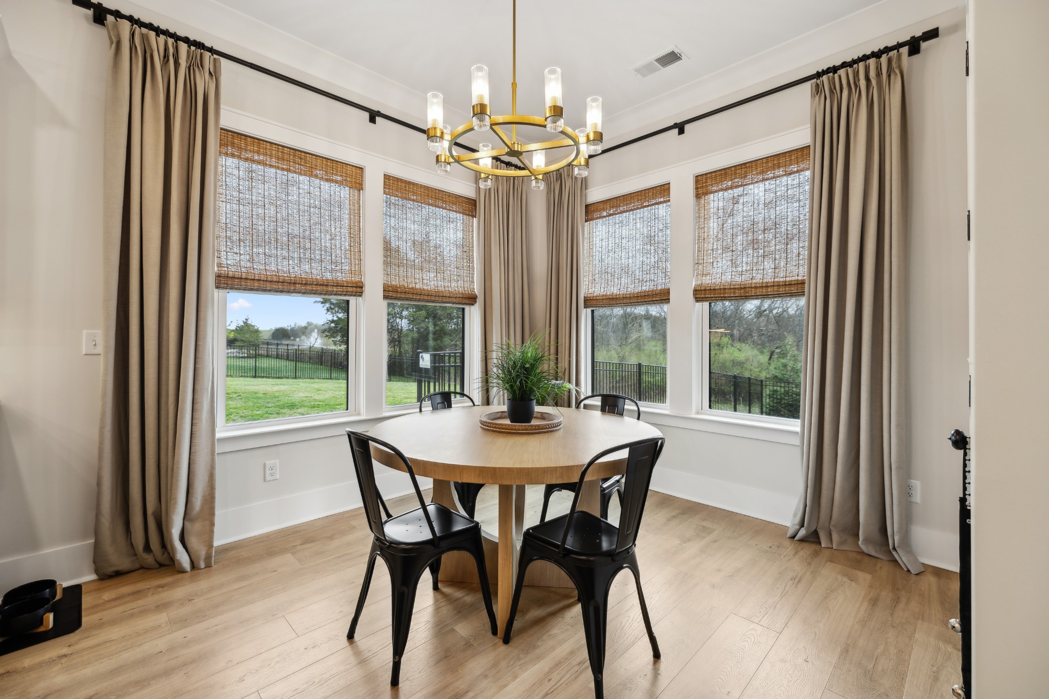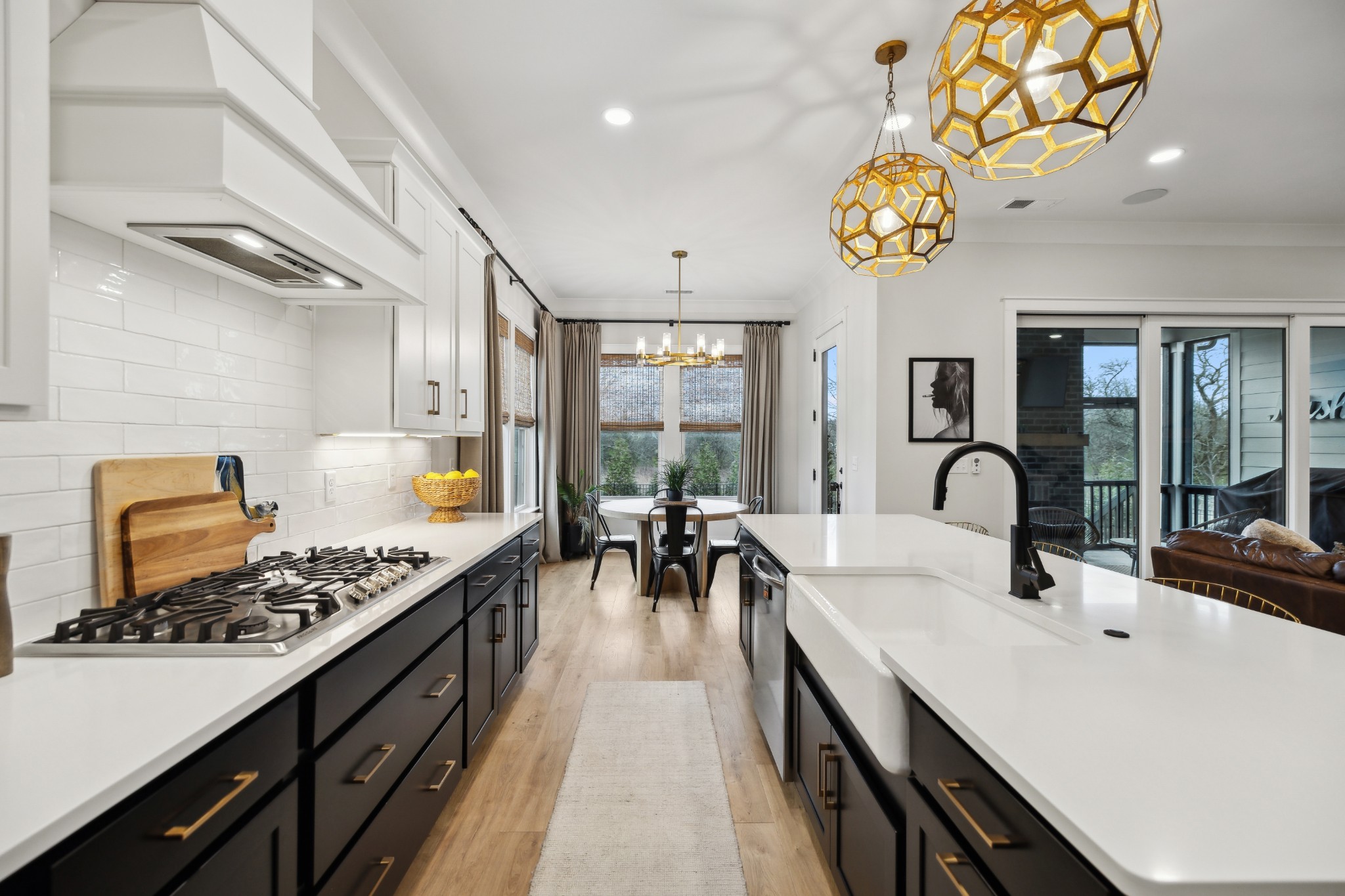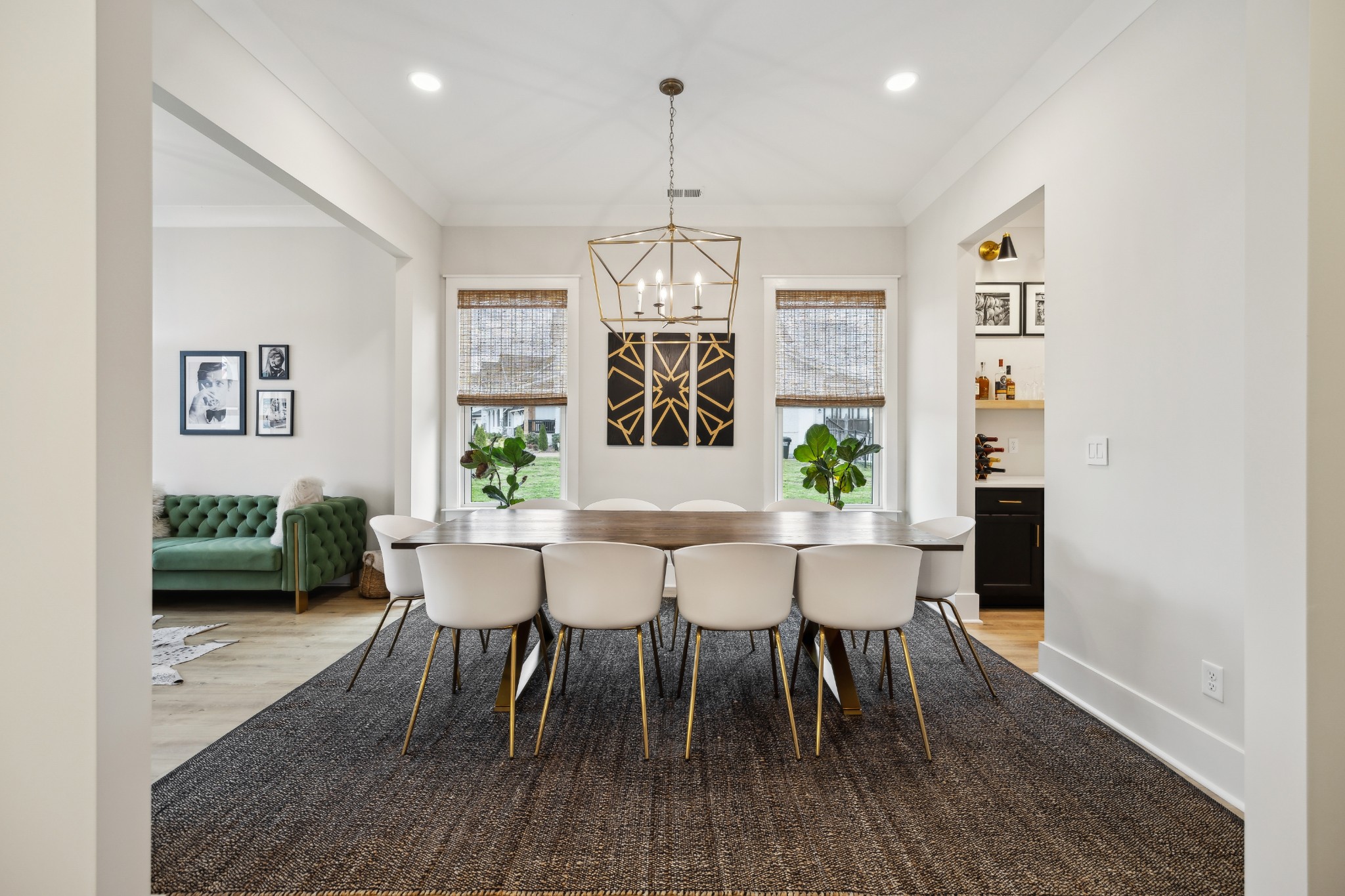 This stunning six-bedroom home offers incredible flexibility and a bright, airy atmosphere. Nestled against a serene wooded backdrop, the property provides a sense of privacy and tranquility. A beautiful center-meeting sliding door seamlessly connects the main living space to the screened porch, where a charming brick fireplace creates the perfect spot to relax and enjoy the peaceful surroundings. Inside, the spacious layout includes a formal living room that can easily be transformed into a home office, providing versatility to suit your needs. A stylish beverage bar effortlessly links the kitchen and dining area, making entertaining a breeze. The fenced backyard offers plenty of space for outdoor enjoyment, whether hosting guests or simply unwinding in your own private retreat. This home is a perfect blend of elegance, comfort, and functionality.