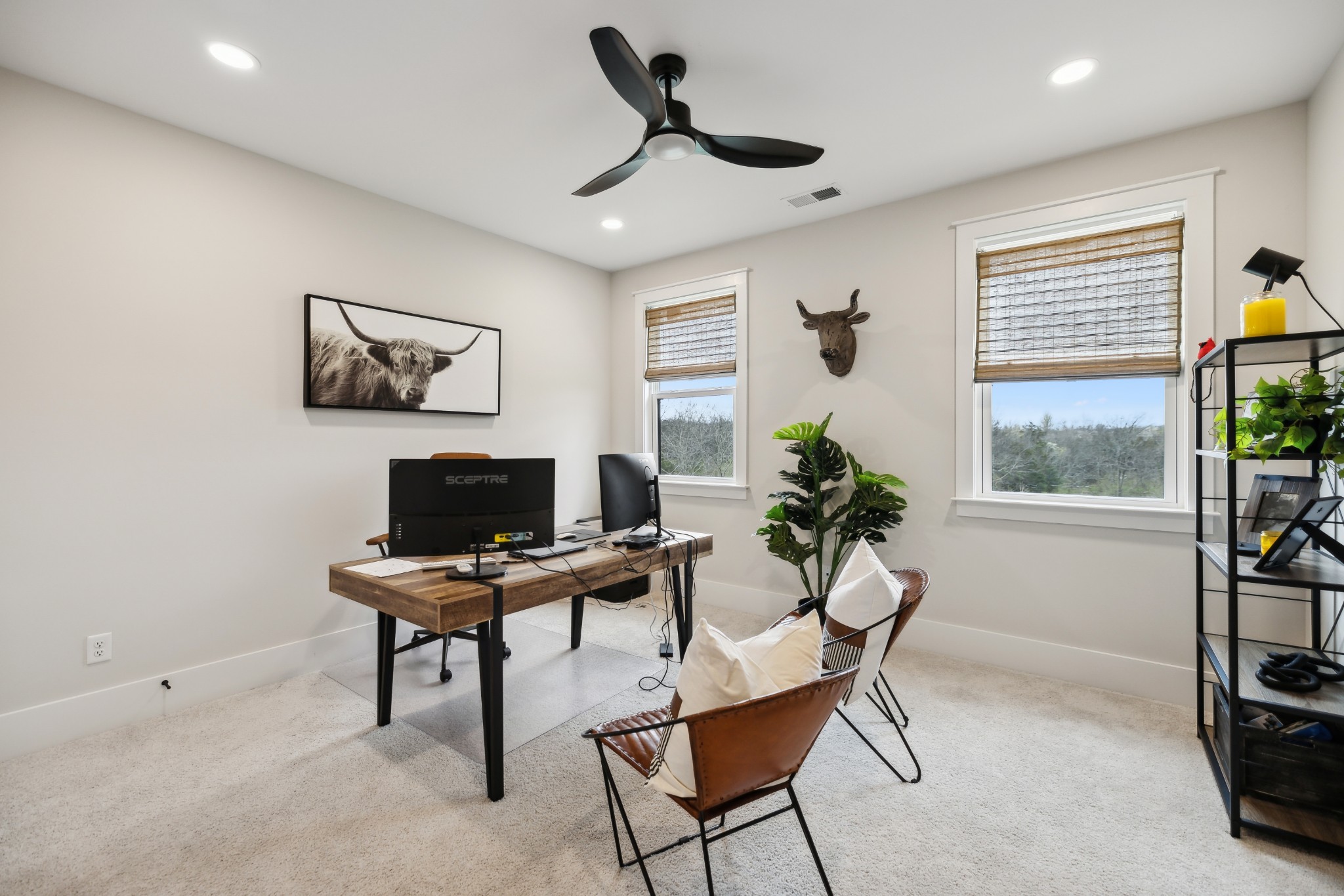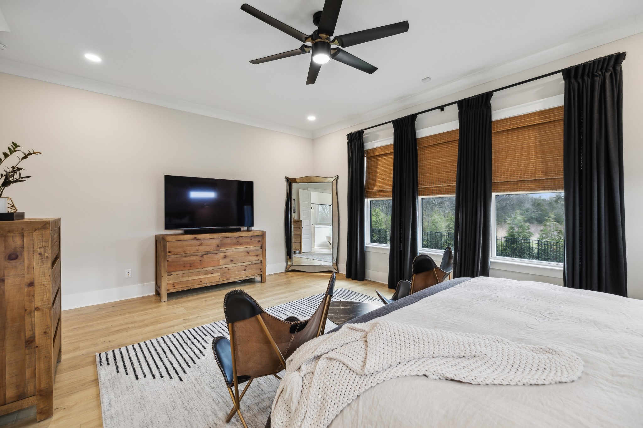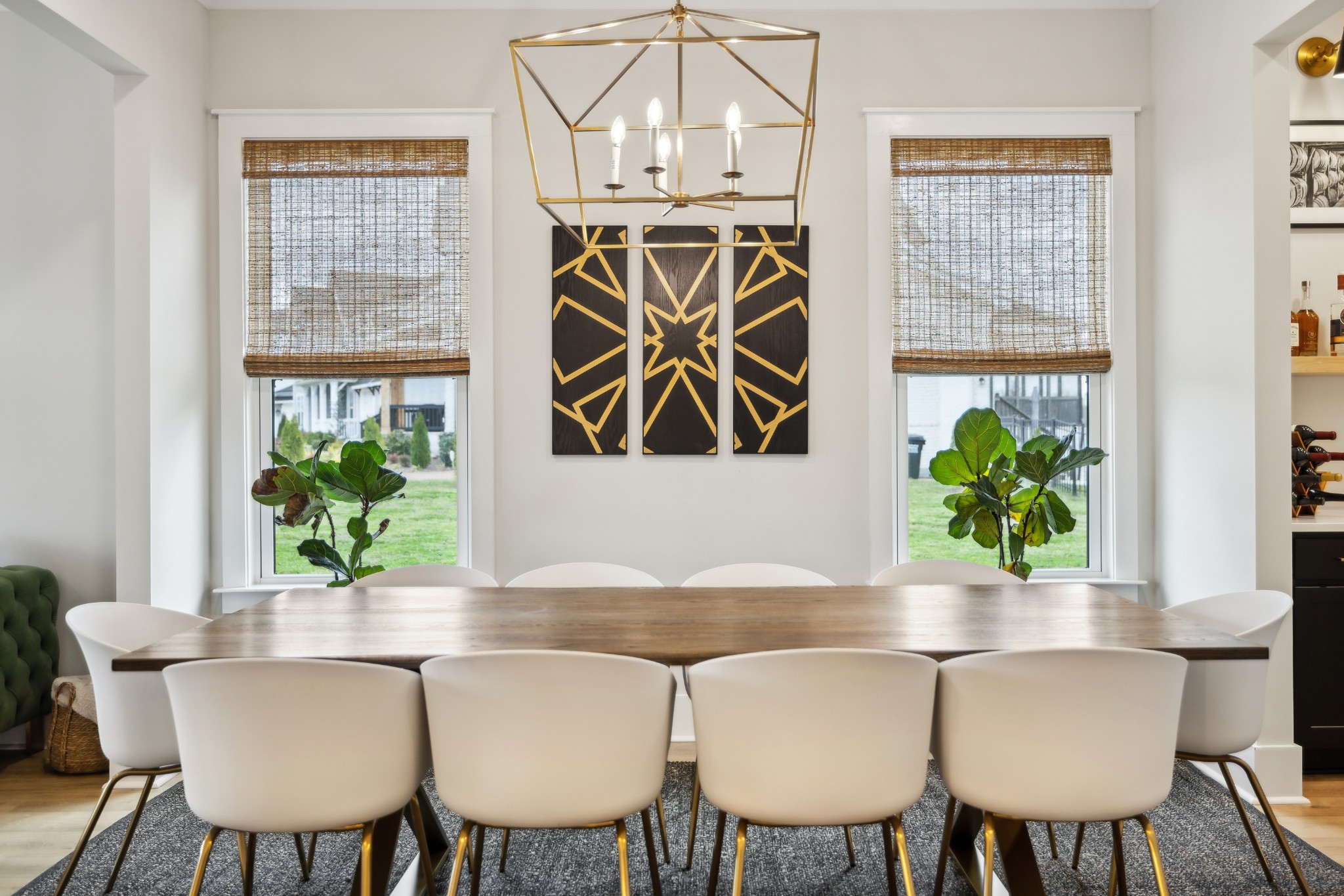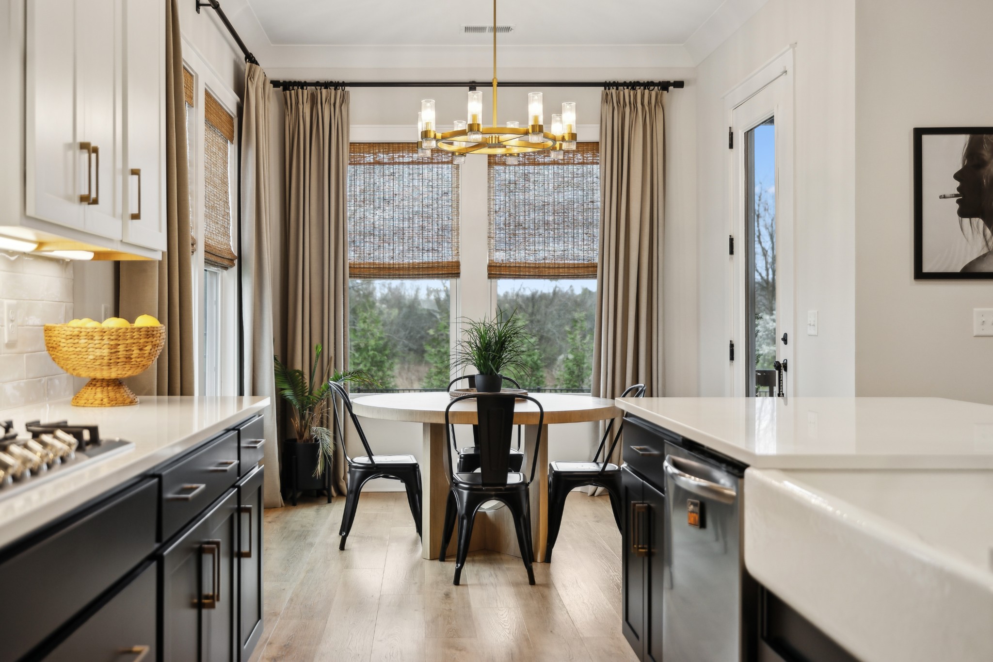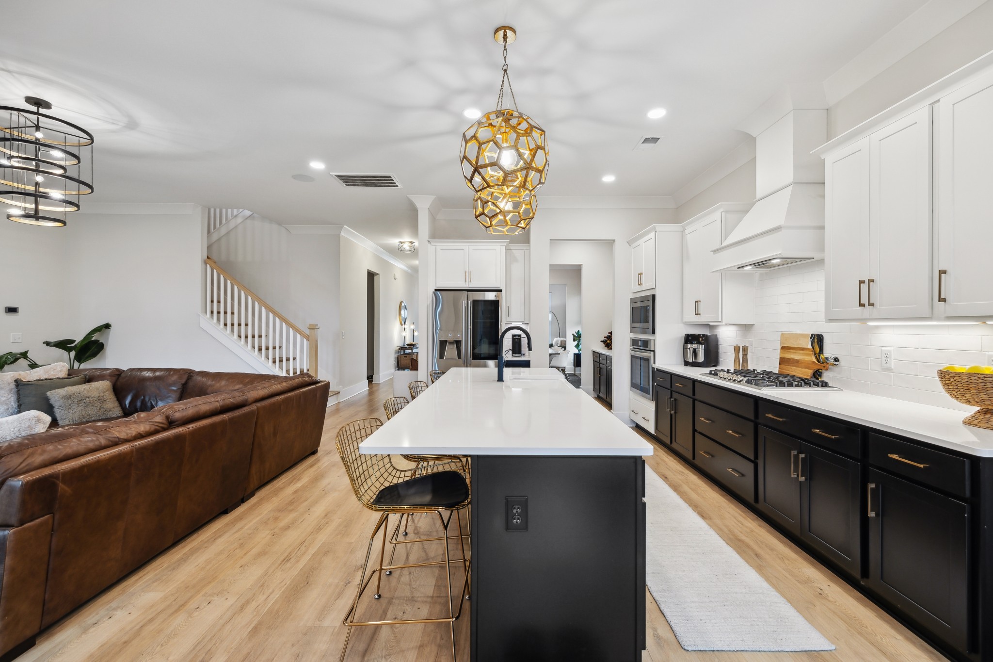 This stunning six-bedroom home offers incredible flexibility and a bright, airy atmosphere. Nestled against a serene wooded backdrop, the property provides a sense of privacy and tranquility. A beautiful center-meeting sliding door seamlessly connects the main living space to the screened porch, where a charming brick fireplace creates the perfect spot to relax and enjoy the peaceful surroundings. Inside, the spacious layout includes a formal living room that can easily be transformed into a home office, providing versatility to suit your needs. A stylish beverage bar effortlessly links the kitchen and dining area, making entertaining a breeze. The fenced backyard offers plenty of space for outdoor enjoyment, whether hosting guests or simply unwinding in your own private retreat. This home is a perfect blend of elegance, comfort, and functionality.